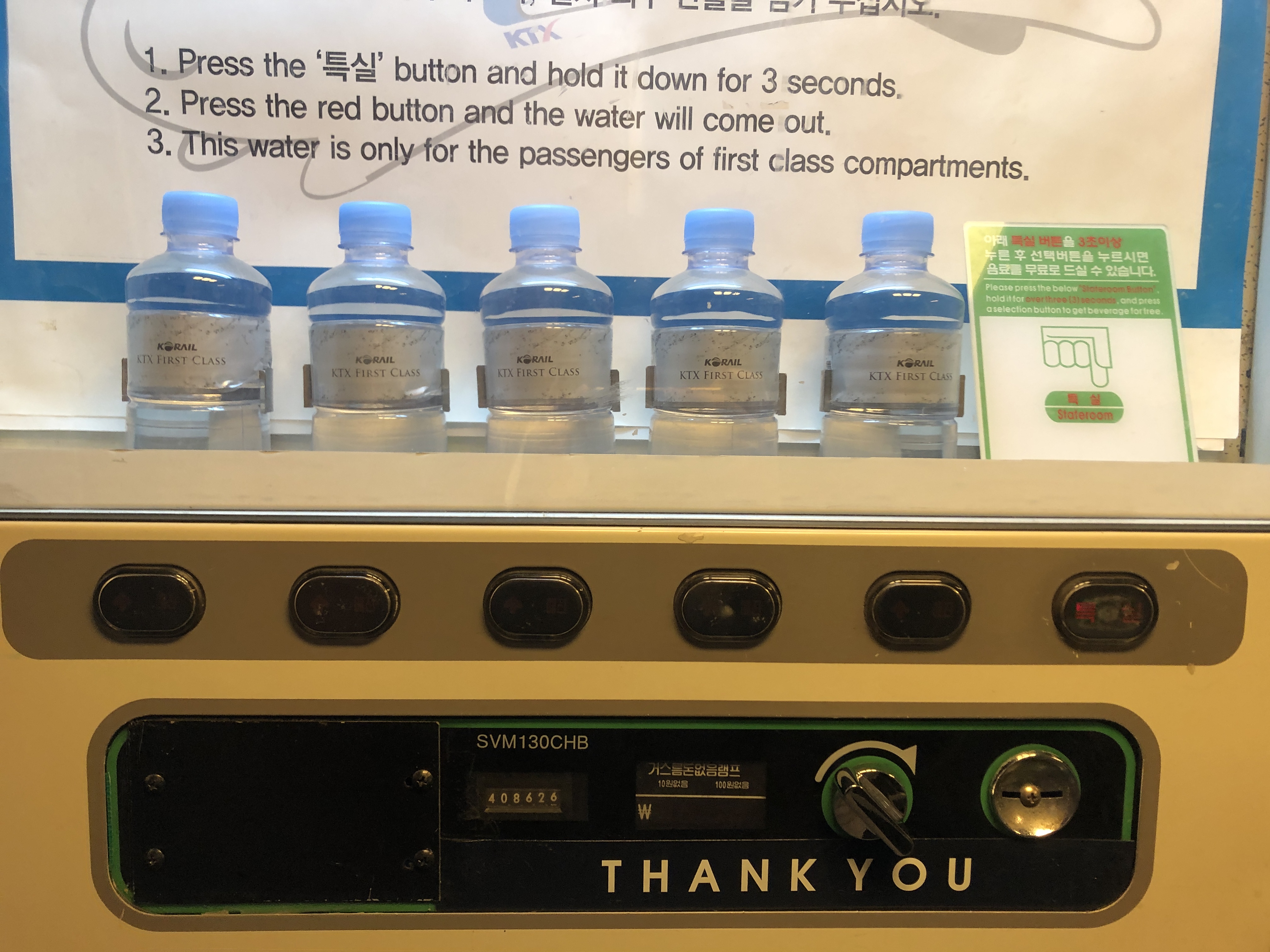 돌아 올땐 물자판기를 이용했는데 나 왜 KTX 진짜 이용많이했는데 특실도 많이 탔는데 왜 이제 발견한 거..? 통로는 솔직히 그냥 휙휙 관심없이 지나다녀서 물자판기가 있는지 첨알았다.