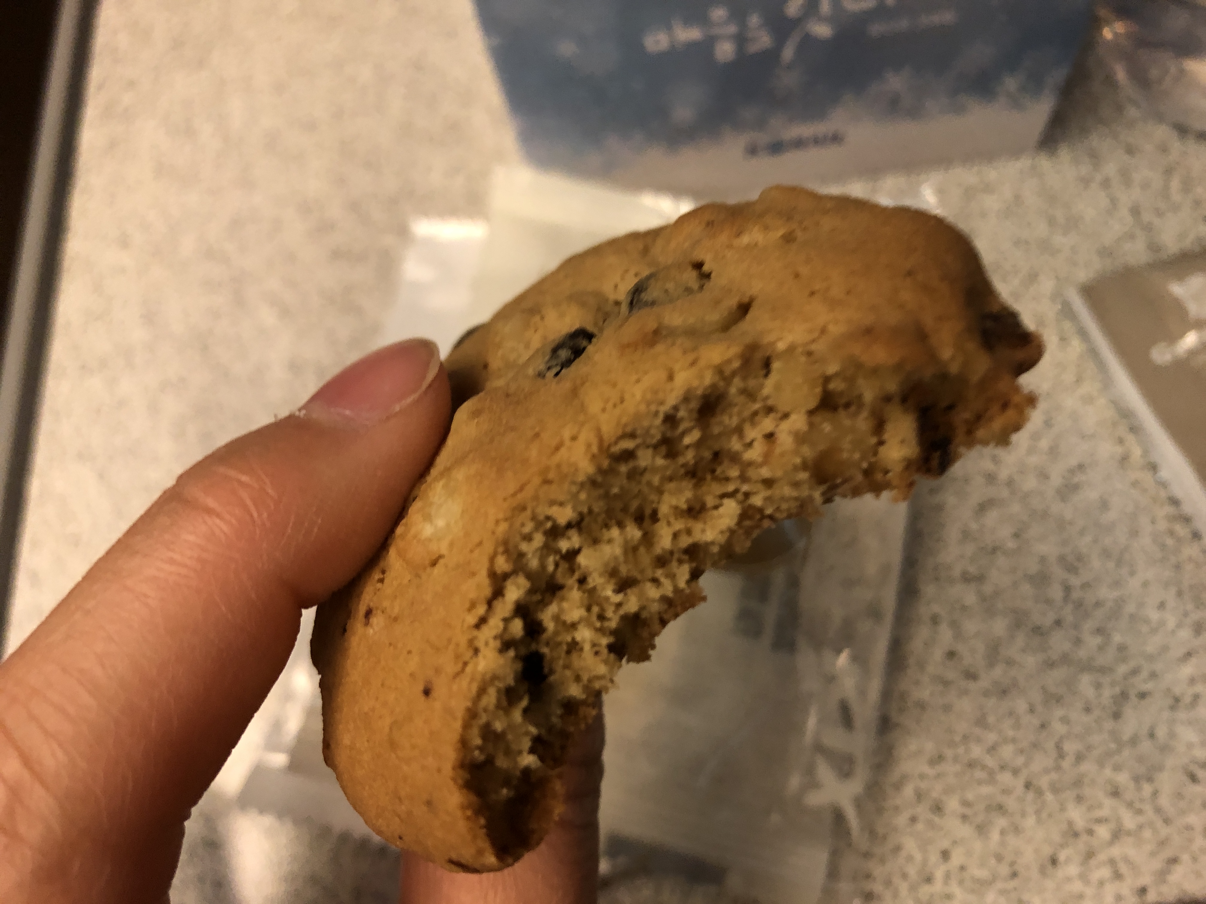 무려 파리크라상 초코쿠키다. 근데 맛은 견과류가 박힌 초코쿠키여서 음 살짝아쉽, 내취향이 아니다. 그냥 초코쿠키였음 더 좋았을 뻔했다.