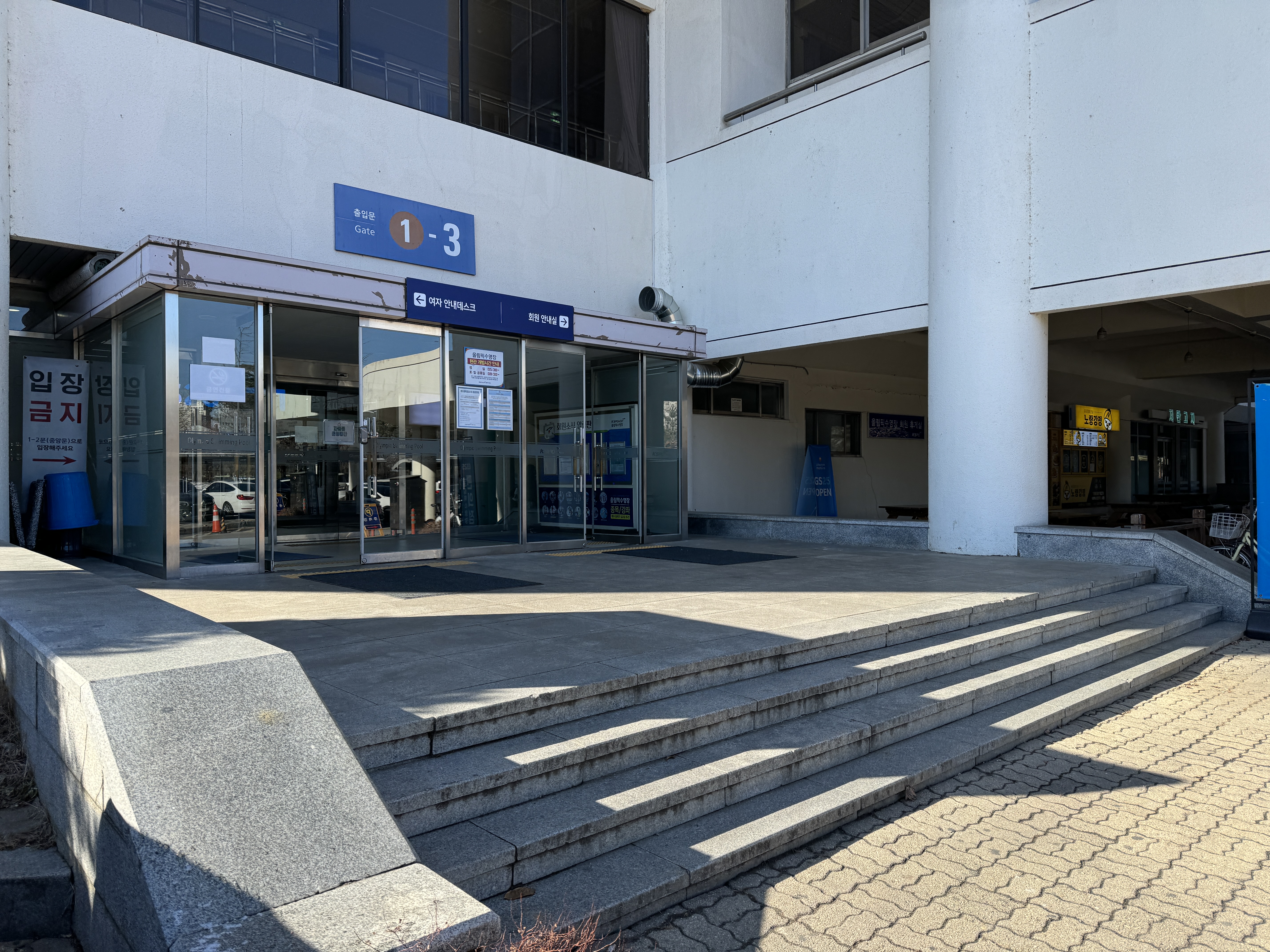 수영장 건물 오른쪽으로 내려가야 수영장 입구가 있어요 밤사이 눈이 와서 길이 미끄러워요 바람도 불고 강추위를 뚫고 스타트 연습하러 왔어요 흡,,