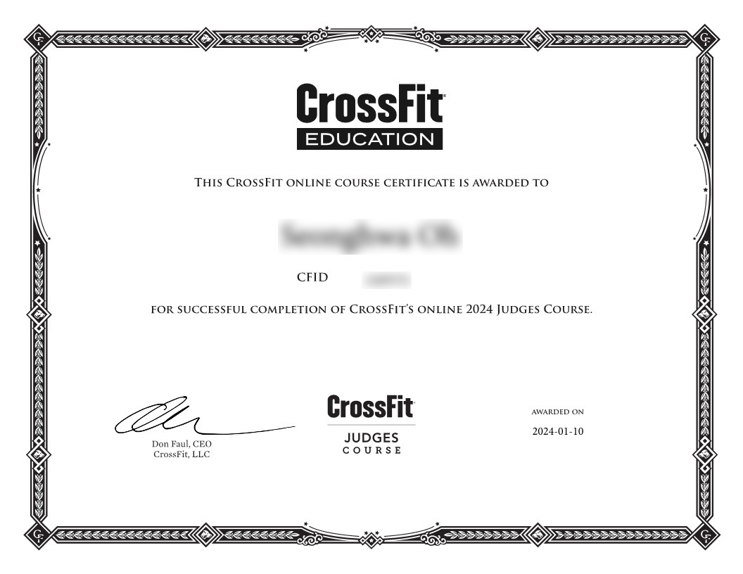 마찬가지로 크로스핏 홈페이지에서 져지 자격증을 딸 수 있는데