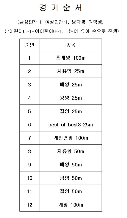 안녕하세요? 안양시수영연맹 입니다.2024년 3월 17일(일) 마스터즈 수영대회를 개최하려 합니다.많은 참여와 관심 부탁드립니다.참가신청 기간 :2024년 1월 27일 ~ 2월 18일 17시까지 선착순 600명 마감
