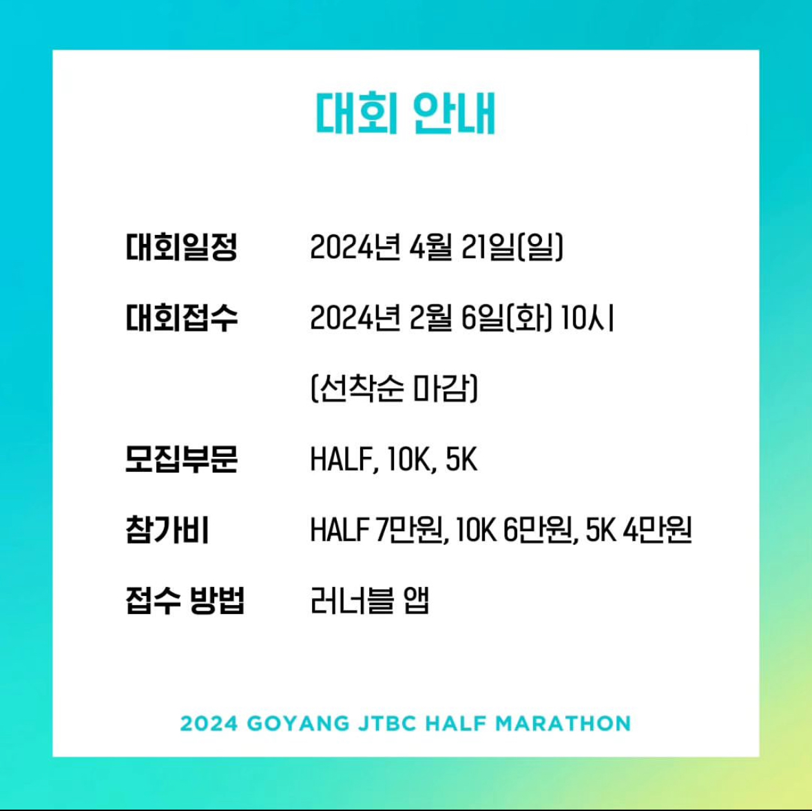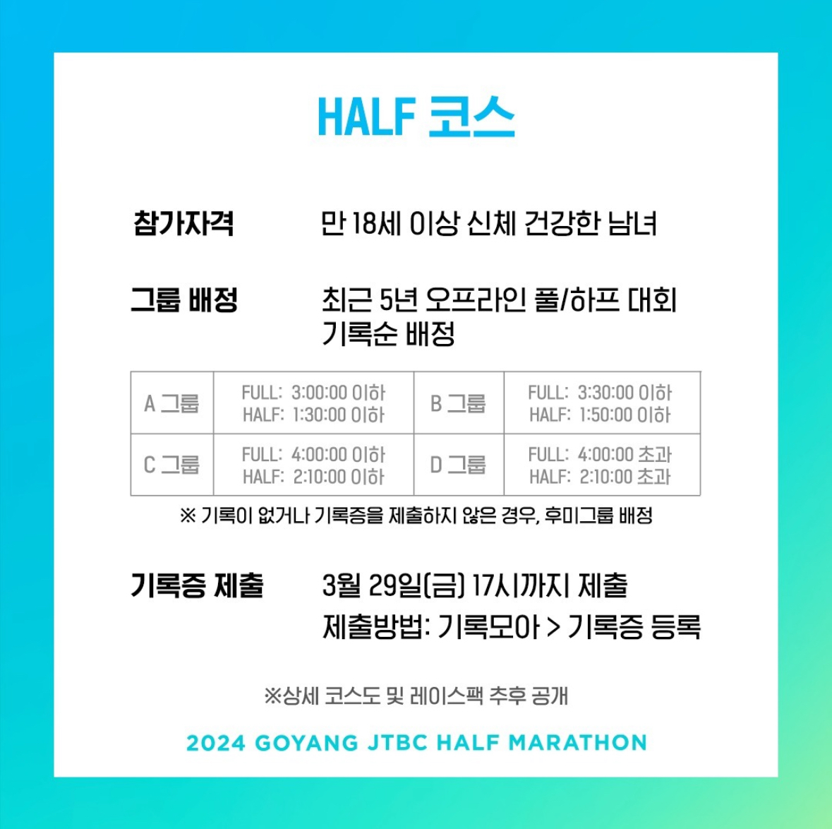 이번 고양 jtbc 하프마라톤도 금방 마감되겠죠