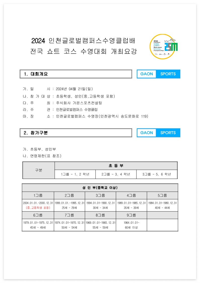| 제3회 춘천소양강배 전국 마스터즈 수영대회 요강 (1) | 2024.03.13 |