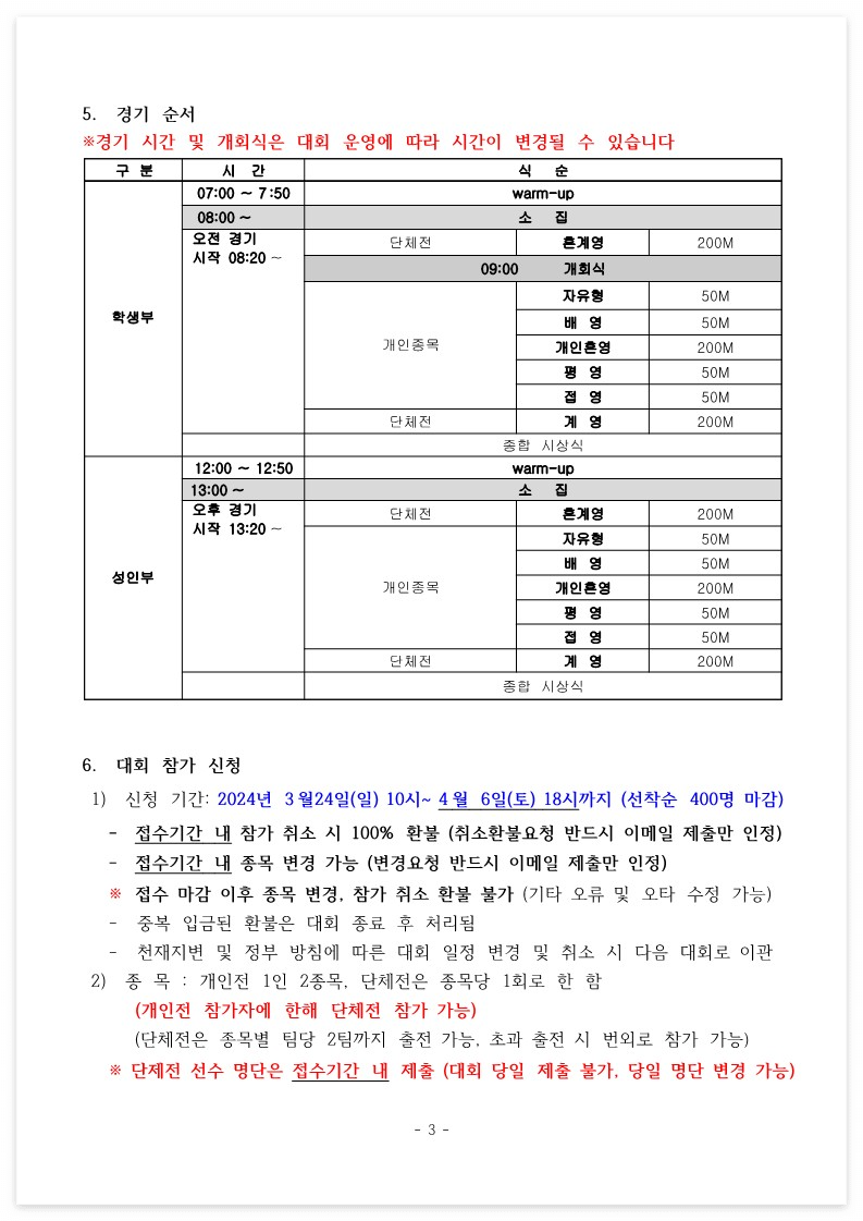 | 제3회 춘천소양강배 전국 마스터즈 수영대회 요강 (1) | 2024.03.13 |